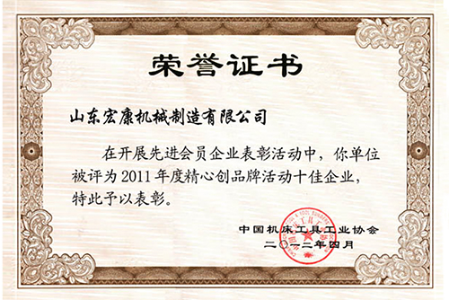 中國機床工具工業協會榮譽證書
