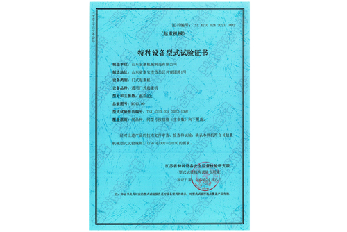 通用門式起重機型式試驗合格證